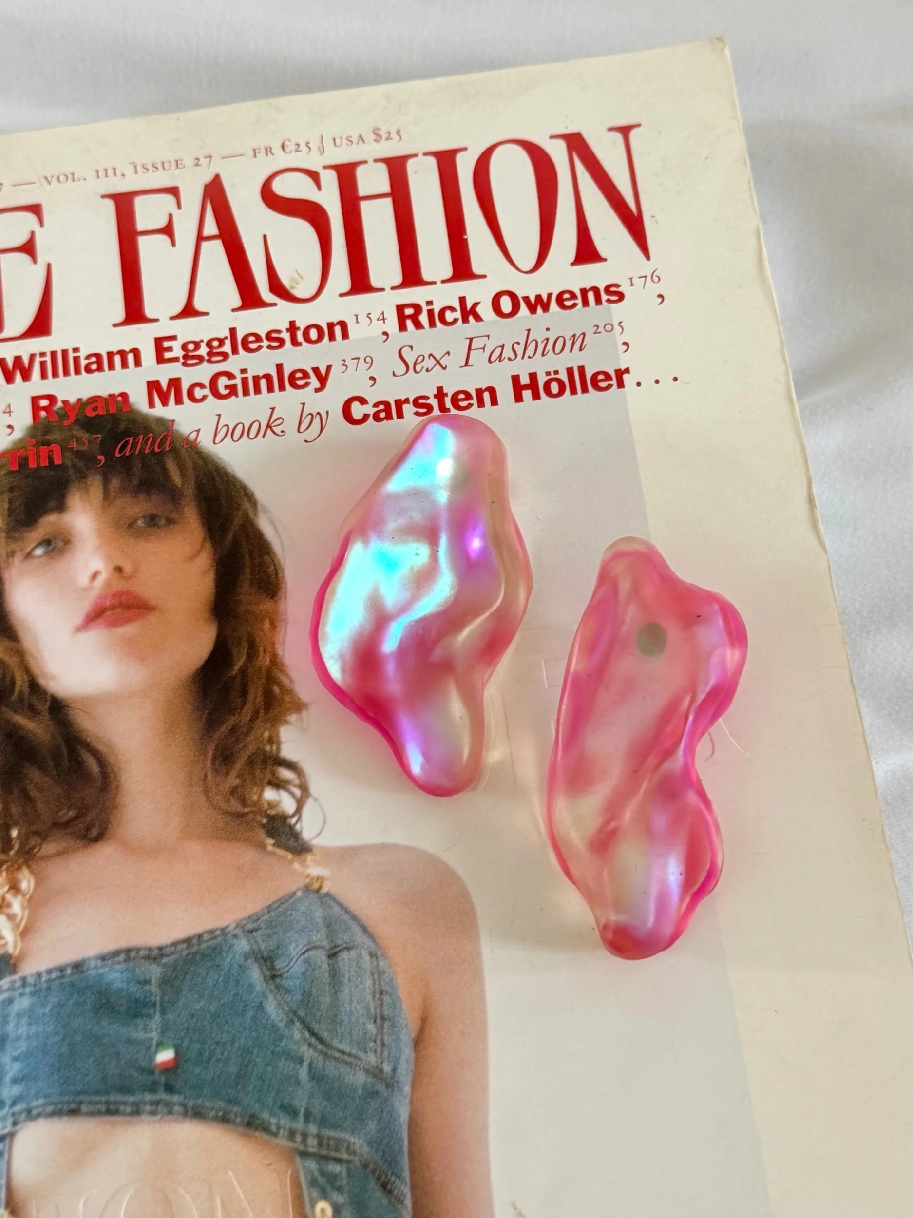 Shop › Pink Holographic Resin Glob Earrings Image 1 of 2 Image 2 of 2 Pink Holographic Resin Glob Earrings $75.00 Details Brooklyn based 8x10 small designer Hypoallergenic metal studs Pink holographic resin Add To Cart Added! Details Brooklyn based 8x10 small designer Hypoallergenic metal studs Pink holographic resin